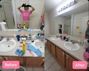 Sam R was wonderful! Not only was she very thorough (she did great work on our hard water-stained shower door), but she was also very nice and considerate of our pets .